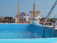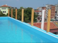 В отеле работает ресторан и собственный небольшой бальнеоцентр, на крыше открытый бассейн.