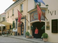 Отель Stikliai 5* (Стикляй 5*) расположен в центре старого города, на краю старого еврейского квартала- это один из самых известных и дорогих отелей в Литве. 3-этажное необычное здание, построенное в 17 веке в традиционном стиле, расположено на выложенной булыжником улице. Красивый вход в отель ведет в очень маленький, стильный и комфортабельный вестибюль, напоминающий маленький семейный отель.