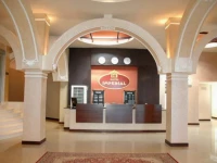 Отель Imperial 3* расположен в Албании, в городе Эльбасан, в 35 км от международного аэропорта города Тирана, на въезде в город, у подножия горы. Отель находится в нескольких шагах от моста Zaranika и реки Шаумбини, в 700 метрах от этнографического музея, в тихом и спокойном месте, в окружении оливковых деревьев. Отель очень удобен для проведения деловых встреч и корпоративных мероприятий, а также в отеле с удовольствием останавливаются туристы.