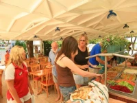 Для проживания гостей предлагаются 59 номеров, оборудованных кондиционером, ТВ, телефоном, мини-баром, отдельной ванной комнатой и балконом, откуда открывается потрясающий вид на море.