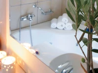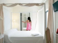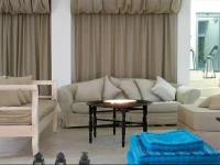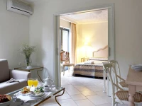 Были в этом отеле с 11.06.2010г по 18.06.2010г. Отель очень понравился.оплатили студио, но дали мезонет, который идет дороже.Номер 2-ух этажный, на 1-ом эт. кухня и раскладной диван, балкон.На втором спальня, телевизор с плоским экраном и даже dvd, ванна с джакузи.Причем, на кухне есть все даже утюг и выдвижная гладильная доска+свч, соковыжималка, тостер, ну и конечно плита , холодильник, вся кух