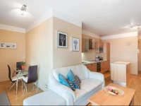 Светлые и элегантные апартаменты располагают спальней с двуспальной кроватью, гостиной с мягкой мебелью, полностью оборудованной кухней с обеденной зоной, а также меблированным балконом с панорамным видом на город и Влтаву. В ванной комнате есть ванна, душ, фен и полы с подогревом.