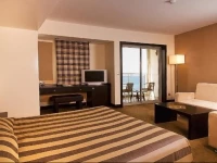 Для проживания гостей предлагаются 133 роскошных номера различной категории, оборудованные сплит-кондиционером, спутниковым ТВ, мини-баром, сейфом, WiFi, телефоном и балконом, откуда открывается потрясающий вид на Эгейского море.