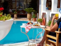 Отель Villa Galinia 2* расположен в Греции, на острове Санторини, в поселке Акротири, в 9 км от аэропорта, в 300 метрах от ближайшего пляжа. Популярный Красный пляж находится в 2,5 км от отеля. Отель расположен на побережье Эгейского моря, на краю кальдеры, в тихом и спокойном месте, с видом на вулкан и море.