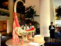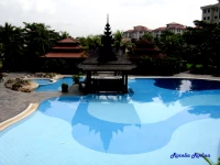 Отель расположен в 3 км от международного аэропорта и в 2 км от центра города, рядом с Пагодой Шведагон, озером Инья и другими достопримечательностями. Он представляет собой большое белое высотное здание из бетона, доминирующее над озером и видимое издалека. Современный стиль здания дополняет крыша в традиционном бирманском стиле.