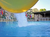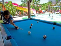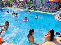 На территории есть парковка, небольшой ресторан, бар, бассейн с секцией для детей, детская игровая площадка, водные горки, сад и многое другое.