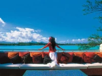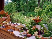 Обед подается на открытой террасе с удобными мягкими диванами с видом на океан, либо в тени белого шатра, где тоже к услугам гостей мягкие глубокие диваны.