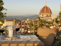 Отель Grand Hotel Baglioni 4*(Гранд Отель Бальони)4*, расположенный в бывшей резиденции княжеской семьи Carrega Bertolini, в историческом центре Флоренции, ведет свою историю с 1903 года, сохраняя атмосферу респектабельности и изящества: интерьеры, выполненные в флорентийском стиле, потолки, обшитые деревянными балками и арки, красивые драпировки и изысканные ковры с преобладанием сиреневых тонов, антикварная мебель, утонченная живопись на стенах.