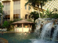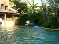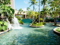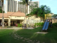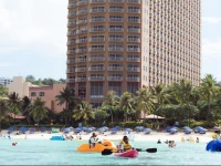 Отель Outrigger Guam Resort - Ohana Beach Club показался мне немного сжатым по территории, несоизмеримо малой по сравнению с самим отелем. Но при этом на эту маленькую территорию попытались уместить несколько бассейнов, водопад, водные горки, пещеру и детскую площадку. Получилось кучно, но неплохо.