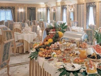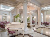 Отель Grand Hotel Des Bains 5* (Гранд Хотел Дес Ваинс 5*) это единственный 5-звездочный отель в Риччионе, построенный в конце девятнадцатого столетия. Оказавшись на территории отеля, вы попадете в удивительный мир, по-королевски роскошной резиденции. Перед вами предстает воздушный, небесно-голубой дворец с белыми колоннами и балконами, где на каждом шагу вас окружают настоящие шедевры итальянского стиля, демонстрирующие бездну вкуса, верх элегантности, потрясающее чувство цвета. Облюбованный европейской элитой еще в 20-е годы прошлого века, расположенный в центре Риччионе, Grand Hotel Des Bains гармонично сочетает в себе почти музейную роскошь и богатство интерьеров с уютом и современным комфортом.