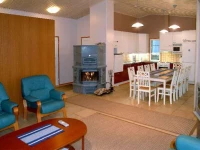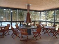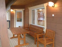 Высококлассные апартаменты Villenkuja (Вилленкуха) для больших компаний или проведения собраний. Просторные общие помещения и кухня, в которой стол на 10 человек. Терраса и остекленная меблированная веранда с грилем, которую можно использовать и зимой. С террасы вид на склоны и озеро. На втором этаже 3 спальни и просторная ванная комната с туалетом. На первом этаже 2 спальни, в которых свои туалеты. В помещении сауны 3 душа, туалет, электрический и дровяной камины для сауны и холодильник для прохладительных напитков. Дополнительные спальные места на диван-кровати. С террасы тропинка к песчаному берегу, где находится причал. Использование оборудования для проведения собраний входит в стоимость аренды.