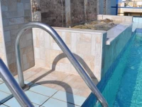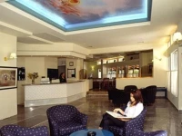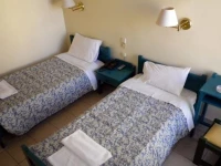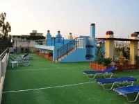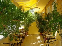 Небольшой уютный четырёхэтажный отельчик. На первом этаже - холл, ресепшн, столовая, бильярд. Под навесом, на улице, столики с креслами, затем два этажа спальные и на четвёртом бассейн, рядом шезлонги
