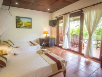 Мини-отель. ОЧЕНЬ РЕКОМЕНДУЮ ВСЕМ, ОСОБЕННО РОМАНТИЧЕСКИМ ПАРОЧКАМ, А ТАК ЖЕ ОТДЫХАЮЩИМ С ДЕТЬМИ Состоит из бунгал различного местоположения.В основном,с видом на сад. Территория небольшая, но очень приятная: много зелени, ухоженные газоны, небольшой бассейн, птички (говорящие по-вьетнамски!:))))Отдыхали в ocean view buhgallo. Оно там в единственном числе с видом на океан.