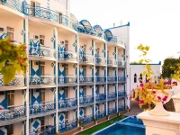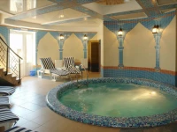 • Бассейн открытый расположен во внутреннем дворике отеля, водопад, противоток, гейзер, гидромассажная ложа. Барная стойка находится прямо в бассейне. Вокруг бассейна расположена зона отдыха