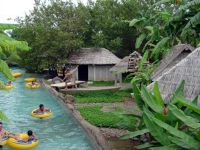 На территории парка есть три ресторана, самый красивый Ресторан Kapa Hapa, вдохновленный культурой Азиатско-Тихоокеанского региона. Красиво оформленный вход: люминесцентным полинезийским парусником.