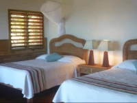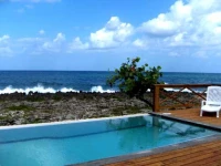 Между бунгало находится главное здание с двумя спальными комнатами, с видом на бассейн и Карибское море.