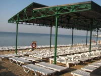 Пляж собственный - оборудован детской площадкой, раздевалкой, душевыми, медпунктом