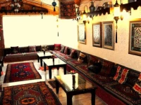 Гости могут насладиться завтраком на террасе, а затем расслабиться в оформленном в османском стиле уголке с турецкими коврами и кальяном.