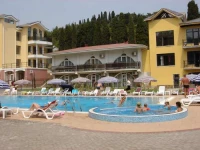 Пансионат Демерджи (Demerji) расположен в самом центре города Алушта и в 45 км от международного аэропорта Симферополя. Гостиница находится в 150 метрах от собственного пляжа,территория отеля примыкает к городскому парку Алушты.