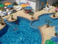 Изящные воздушные формы отеля Эскада Бич (Eskada Beach) 3* удачно смотрятся на приморском бульваре города Ахтополь в нескольких метров от песчаных черноморских пляжей.
