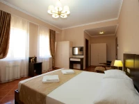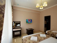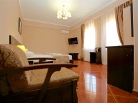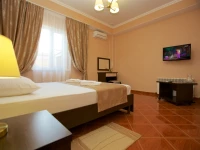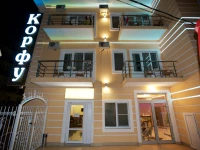 Отель «Корфу» расположен в поселке Витязево и находится в 10 минутах от песчаного пляжа. Гостеприимный сервис отеля «Корфу» порадует своей теплой и уютной атмосферой, а также высоким уровнем обслуживания. Обслуживающий персонал отеля любит и знает свое дело. Приехав в отель «Корфу», гости попадают в особую атмосферу домашнего гостеприимства и особого греческого колорита, помноженного на доброжелательность всего персонала. Внутреннее оснащение номеров гостиницы выполнено в классическом стиле. Гармонично подобрано цветовое решение, удобная мебель. Отель рассчитан на 70 мест, что позволяет найти индивидуальный подход к каждому гостю. Вблизи есть вся необходимая городская и курортная инфраструктура. К услугам гостей открытый бассейн с детским отделением, парковка для автомобилей. Предоставляется бесплатный Wi-Fi. В каждом номере есть все необходимое для комфорта гостей: индивидуальный сейф, фен в ванной комнате, холодильник, сплит-система, плазменный телевизор. В двух минутах ходьбы от отеля «Корфу» расположены различные кафе и рестораны. Также, рядом находится океанариум и дельфинарий, аквапарк, парк аттракционов. Железнодорожный вокзал Анапы находится в 8 км, а аэропорт Анапы - в 7,5 км.