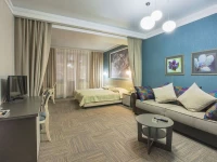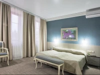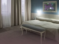 Люкс - уютный двухкомнатный номер, состоящий из комфортной спальни с двумя односпальными кроватями, по желанию гостей трансформирующимися в одну двухспальную, оснащенные ортопедическими матрасами, и гостиной, в которой есть уютный диванчик, письменный и журнальный столы, стул, вместительный гардероб. Отделан в элегантном традиционном стиле.