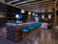В баре представлен широкий выбор вин, крепких алкогольных и безалкогольных напитков, а также авторские коктейли от бар-менеджера заведения.