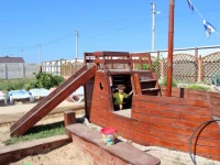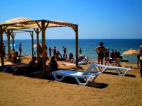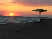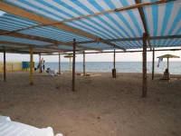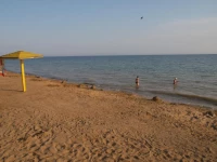 Пляж бесплатный, ухоженный. Неглубокое песчанное дно. На пляже установлены навесы, раздевалки. Расстояние до моря в 650м позволит вам совершить неспешную прогулку, насладиться свежим воздухом и ароматами степных трав.