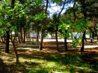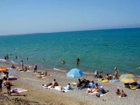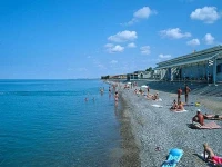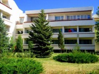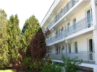 Пансионат Радуга расположен в 4 км от поселка Песчаное. Международный аэропорт Симферополя находится в 49 км, железнодорожный и автовокзал в 53 км от пансионата. Пансионат принадлежит Государственному управлению делами Президента Украины. Комплекс зданий пансионата включает пять четырехэтажных корпусов, соединенных галереями и переходами.