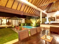 "Pevali" - вилла класса Люкс, выполненная в традиционном Балийском стиле, с открытой гостиной зоной и пышным садом. Большая открытая гостиная выходит на 6-метровый бассейн с шезлонгами.