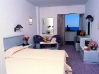 В Фалираки Бич отдыхали в августе вместе с мужем. Захотелось большого песчаного пляжа в придачу к приличному олл инклюзиву. Отель в принципе неплохой, состоит из нескольких типовых корпусов, все чисто, аккуратно, как выяснилось, его несколько лет назад отремонтировали капитально. Мы жили в номере на третьем этаже с чудесным видом на море. Номер небольшой, стандартный – двухместный. В номере: мини-