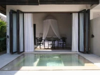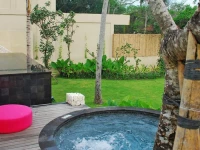 На террасе перед бассейном расположилась гидромассажная ванна на 6 человек с видом и океан. Мостик через небольшую речку отделяет виллу от пляжа и создает ощущение приватности.