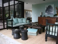 В саду между спальнями расположилась беседка с деревянной мебелью для полуденного чая. За виллой находится большая парковка и дом для персонала.