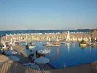 Добрый день!! Приехал из этого отеля 31.08.2011. Ездили туда в втроем двое взрослых и ребенок 6 месяцев. Скажу одно отель только для немцев их там любят и ждут но, что касается нас.... То мы так дополнение .. По еде еды много но она не вкусная (хотя выбор очень большой). Пляж хороший чистый как и море .. Цена двух лежаком 12 евро. бассейн не работает там просто нет воды. Номера хорошие. чистые все