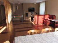 Коттедж в 7км от Минской кольцевой автодороги по Слуцкому шоссе. В доме 4 спальных комнаты, большая гостиная (60 м2) и 3 санузла, на первом этаже все полы с подогревом. Кухня полностью укомплектована: газовая панель, холодильник, СВЧ-печь, посуда. Гостиная оснащена LCD телевизором, спутниковым ТВ, DVD-плеером, караоке и хорошей акустической системой. В стоимость аренды коттеджа также включены безлимитный Wi-fi интернет и настольный футбол кикер. Баня на дровах находиться прямо в доме, а возле дома беседка с мангалом, детская песочница и прудик с водопадом. Летом вся придомовая территория утопает в цветах и в зелени. На парковке во дворе дома имеется 3-4 мест для автомобилей, 2 места под навесом.