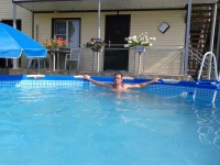 Летом можно пользоваться бассейном, который на теплое время года выставляется на территории гостевого дома.