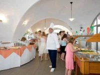 Ресторан отеля Нона (Nona) предлагает гостям обслуживание по системам "шведский стол" (BB, HB) и "а-ля карт": завтрак (7:30-10:00), обед (12:30-14:30) и ужин (18:30-21:00). В ресторане имеются залы для некурящих.