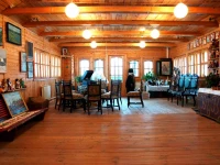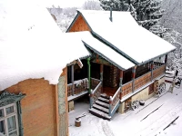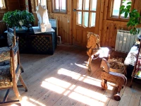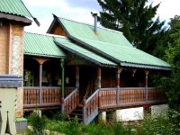 На территории комплекса находятся 2 гостевых дома - большой деревянный двухэтажный "Главный дом" на 4 -5 человек и одноэтажный деревянный дом "Приют путешественника", рассчитанный на 9 человек - 3 жилые комнаты по 2-3 человека, баня по-деревенски, место для приготовления шашлыка и яблоневый сад.