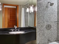 Гостиничные номера просторны и имеют захватывающие виды на залив и город. Во всех номерах есть доступ в интернет, плюшевые халаты и музыкальные системы Nakamichi. Обслуживание в номерах производится круглосуточно.