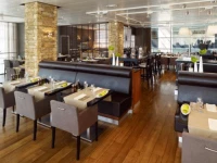 Ресторан первого этажа украшен в естественных тонах и был спроектирован с использованием таких материалов, как лес, кожа и камень. Расслабьтесь в беззаботной атмосфере и наслаждайтесь большим выбором сезонных, международных, национальных и региональных видов закусок и спиртного.