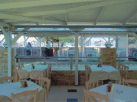 От отеля Лагомандра до пляжа ведет мост через дорогу.