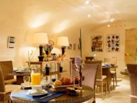 • Традиционный континентальный завтрак: две небольшие сдобные булочки (круассаны, слоеные булочки с шоколадом, изюмом или ванильным кремом), свежая деревенская булка, два вида варенья, мед, сыр, фрукты, апельсиновый сок и горячие напитки на ваш вкус.
