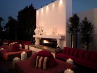 Иконические ворота в стиле Mondrian высотой 25 футов из тропических бугенвилий формируют символичный вход в отель. При входе гостей встречает охлаждающий фонтан, спускающиеся каскадом белые портьеры, античные зеркала, извивающаяся скамья под баобабом и увеличенный образ Адама и Евы Дюрера.