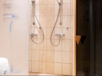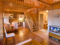 Высококлассные апартаменты LUX имеют гостиную с настоящим каменным камином, столовую и кухню, 2 спальни и мансарду. Здесь могут разместиться 8 человек. В мансарде есть игровая комната для детей с игрушками и видео. В ванной 2 душа и сауна.