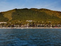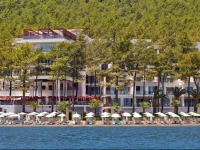 Долго выбирали отель для отдыха. Ездили с ребенком 3-х лет и друзьями. Сам отель находиться в очень живописном месте, он утопает в зелени. Отель находиться в бухте, среди сосен. Красивое, чистое Эгейское море. Пляж - мелкие камушки, но заход в море удобный. Плавают рыбки маленькие, которые кусают за ноги) но это не напрягает) На море практически всегда штиль, могут быть мелкие волны - если есть ве