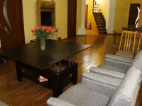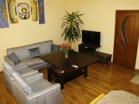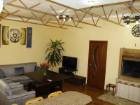 The living room (65 m²) with the adjacent open plan kitchen unit boasts a comfortable sofa (can be pulled out as a sofa bed for two people) and armchairs. Fireplace and dining space and a modern, fully-equipped kitchen unit that provides everything you need. Available also air conditioner, 42” LED TV with international satellite channels and radio.