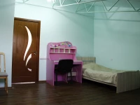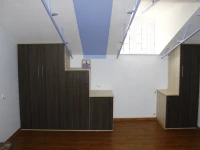 - It has a small double bed (113 x 200) for 1 people. There is 1 coat for up to 1-5 years old kids. There are built-in wardrobes, hanging rail inside. a small lamp from coconut.