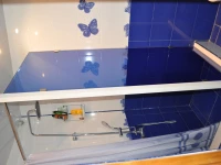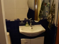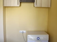 In bathroom and toilet, you will find a wardrobe with hangers, mirror, an ironing board, an iron and a vacuum cleaner. The bathroom offers a shower and a washing machine, cleaning supplies and a hair dryer.