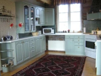 В одной спальне на нижнем этаже 2 раздельные кровати, в другой 1 кровать.
