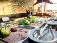 Основной ресторан в традиционном стиле с летней террасой, рассчитанный на 80 мест, и панорамный ресторан на 70 мест, предлагают богатый выбор блюд международной кухни. Так же в отеле есть коктейль-бар на 60 мест, предлагающий большой выбор напитков.